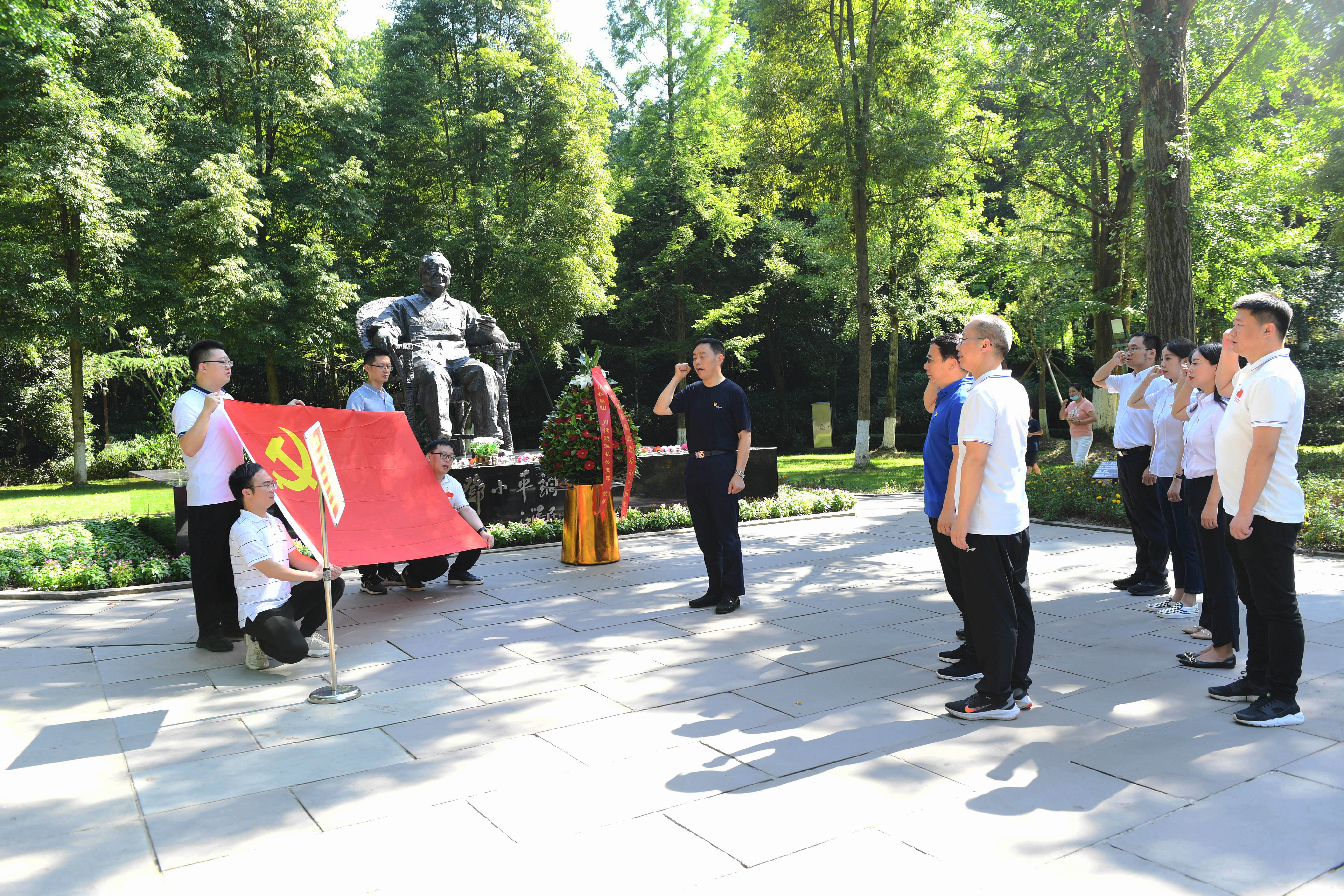 在鄧小平故里,全體黨員在鄧小平銅像前深深三鞠躬,敬獻花籃,表達了對一代偉人的深切緬懷和無限敬仰之情。仰望偉人銅像,面向鮮紅黨旗,全體黨員整齊列隊,在鄧凱同志帶領下重溫入黨誓詞,莊嚴宣誓:“我志愿加入中國共產(chǎn)黨,擁護黨的綱領,遵守黨的章程,履行黨員義務……”隨后大家走進鄧小平故居陳列館、鄧小平緬懷館、鄧小平故居等地參觀學習。觀看文獻紀錄片《小平你好》、現(xiàn)場接受黨性教育主題宣講教學,全體黨員深入了解了鄧小平同志波瀾壯闊的人生歷程,切身感受了偉人敢為人先的膽識和氣魄,深刻體會了改革開放的巨大變化和不朽功績。