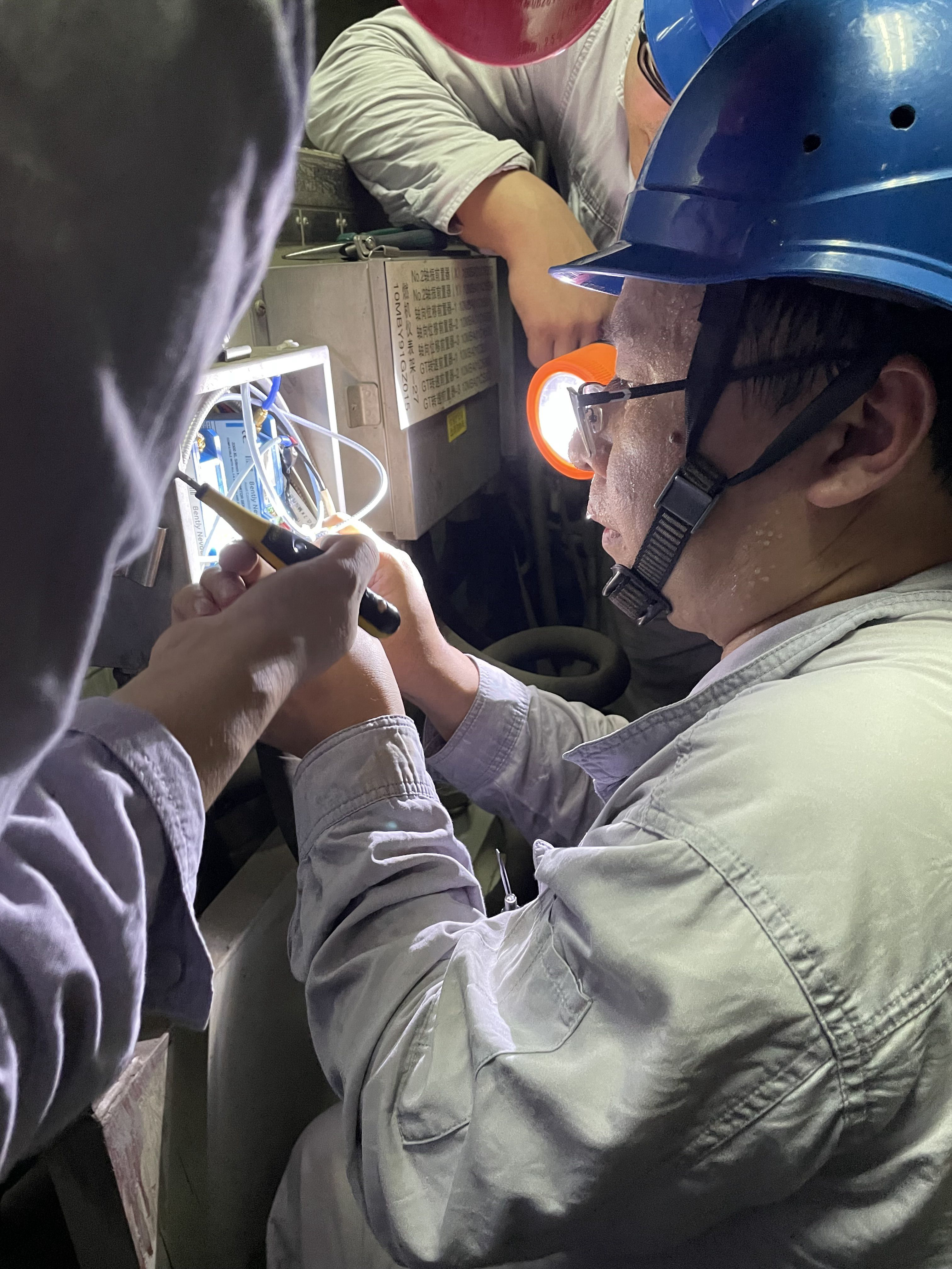 此時(shí)剛停運(yùn)的燃機(jī)罩殼內(nèi)溫度高達(dá)60℃,如同一個(gè)巨大的“汗蒸房”。為了盡快搶修,薛國和值班人員祝青海、葉亭壓根兒沒時(shí)間等熱氣散去就開始了檢查。