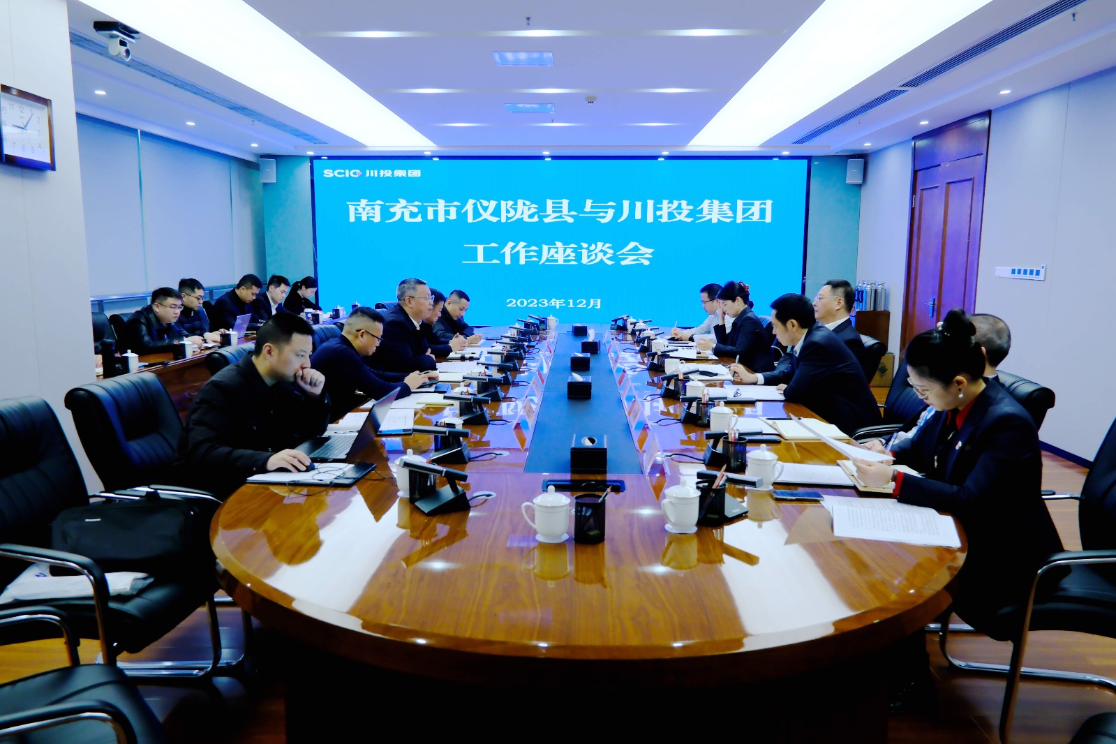 12月5日,南充市儀隴縣縣委書記郭宗海一行到訪川投集團,就落實省委、省政府對39個欠發(fā)達縣域托底性幫扶的安排部署,與川投集團開展專項工作座談交流。集團黨委副書記、副董事長、總經理李文志出席并主持會議,集團黨委副書記、董事鄧凱參加會議。