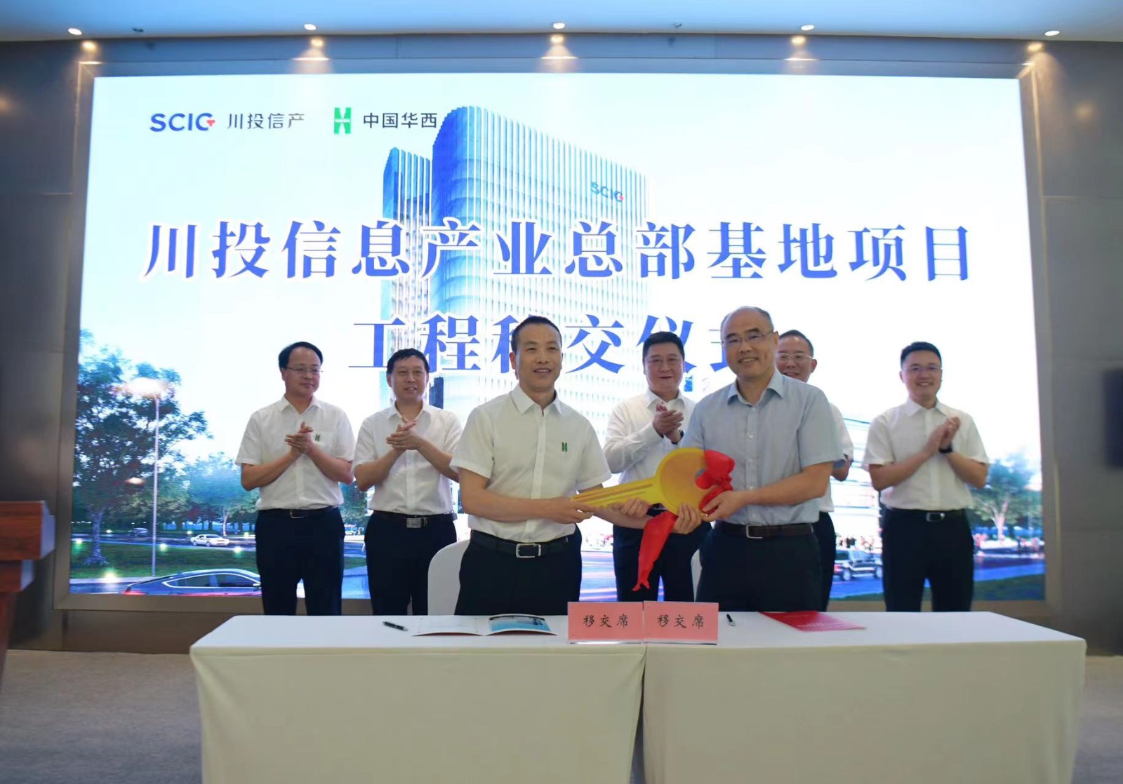 移交儀式上,華西十二公司和川投信產(chǎn)相關(guān)負(fù)責(zé)人分別代表雙方簽署工程移交書。