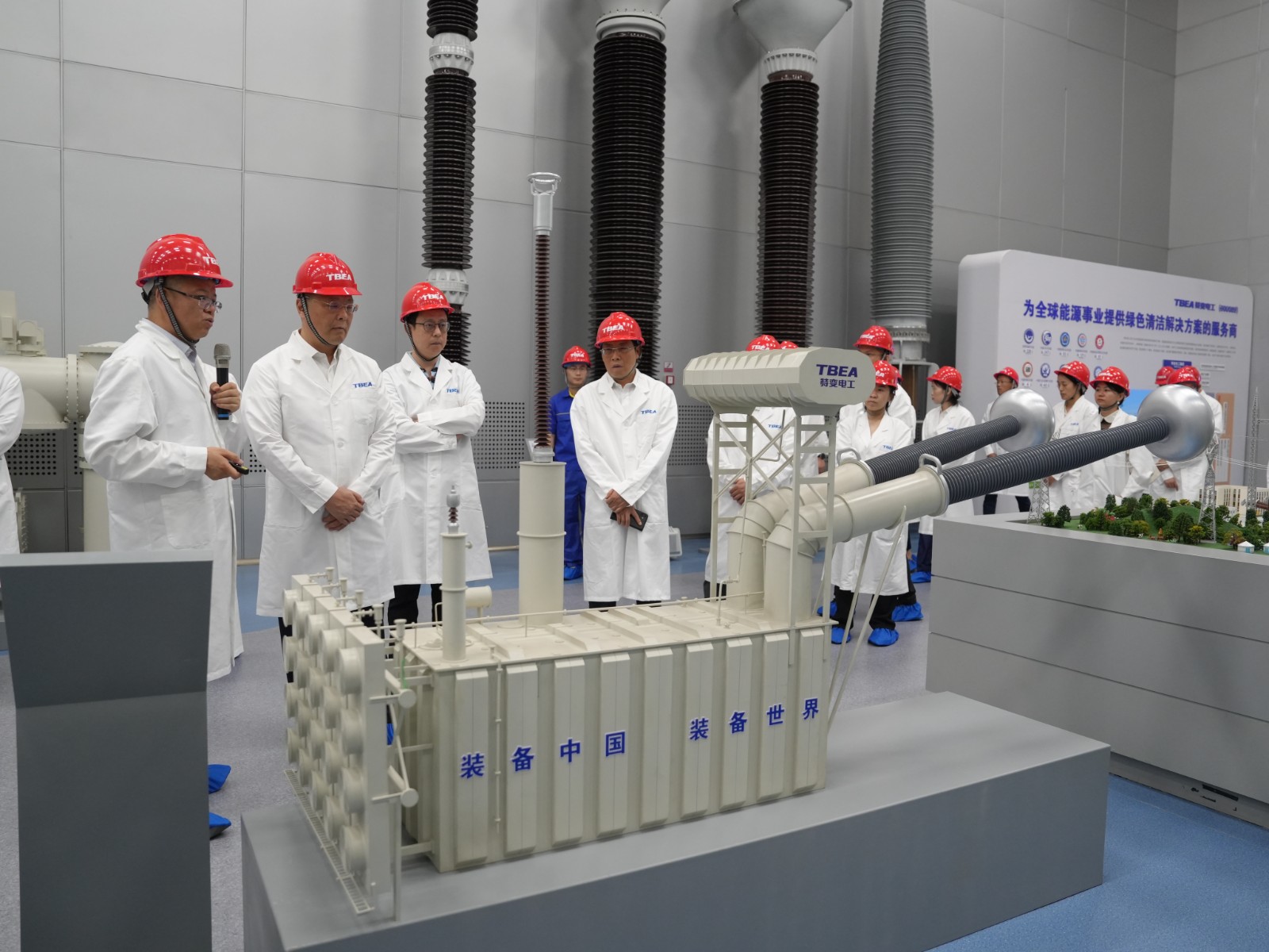 李文志一行前往特變電工1100特高壓和硅基新材料生產(chǎn)車間,參觀了特變電工企業(yè)文化展廳,詳細(xì)了解了特變電工在業(yè)務(wù)拓展、技術(shù)研發(fā)、人才培養(yǎng)等方面的優(yōu)勢(shì)和成果。