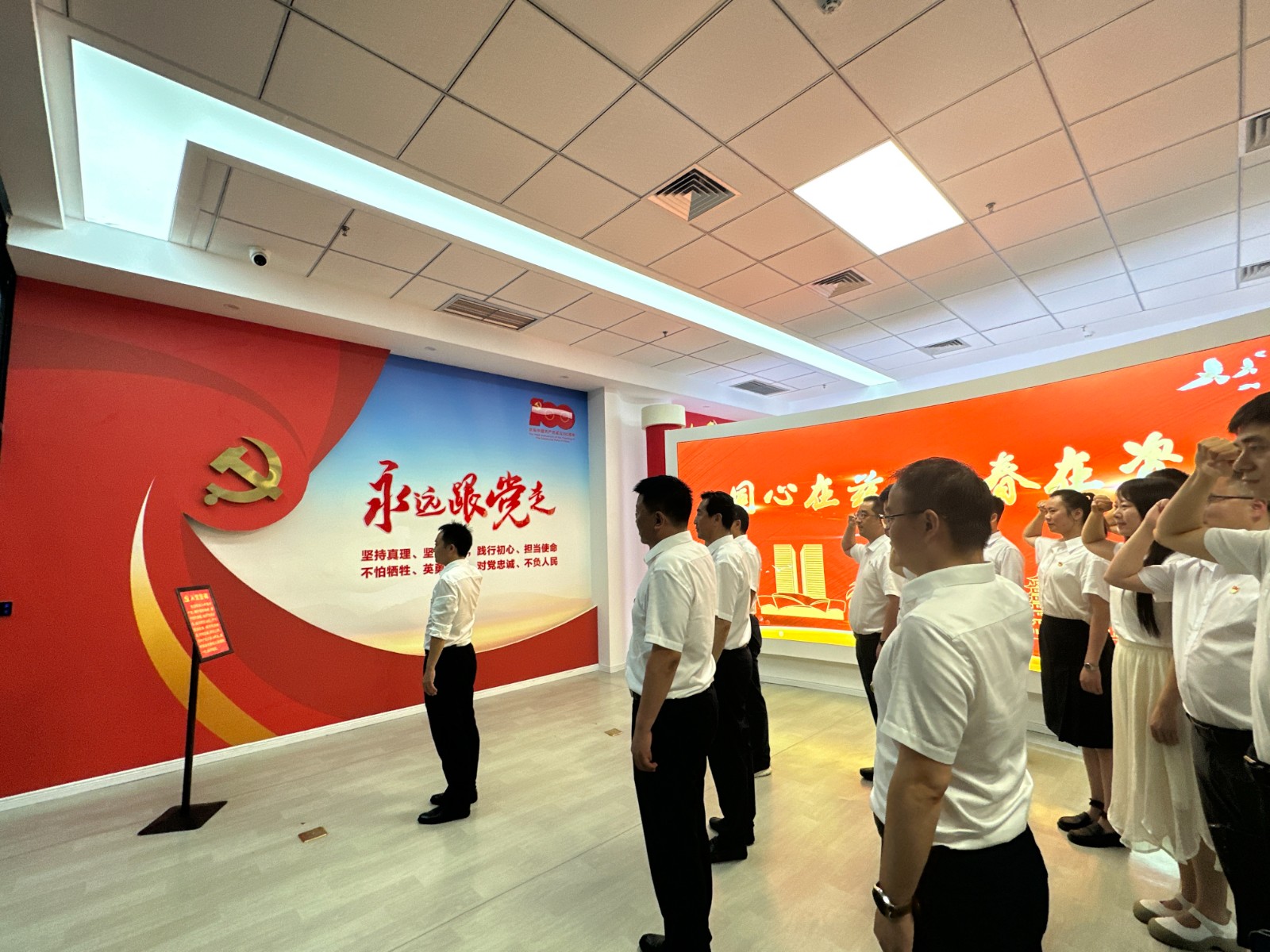 省國資委政策法規(guī)處處長鄧愛平、省司法廳普治處處長邊疆,集團(tuán)公司總法律顧問、法務(wù)風(fēng)控部部長楊帆,資陽口院黨委書記、理事長張中偉及相關(guān)30余人參加調(diào)研及主題黨日活動。