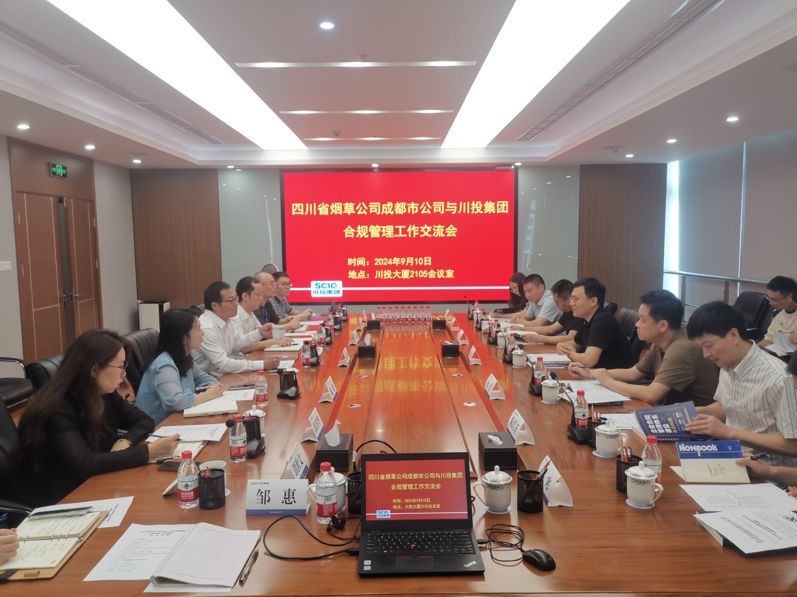 9月10日,四川省煙草公司成都市公司副經(jīng)理蔣志興率隊(duì)到訪川投集團(tuán),雙方就企業(yè)合規(guī)管理工作展開(kāi)交流。集團(tuán)公司總法律顧問(wèn)、法務(wù)風(fēng)控部部長(zhǎng)楊帆主持交流會(huì)議。