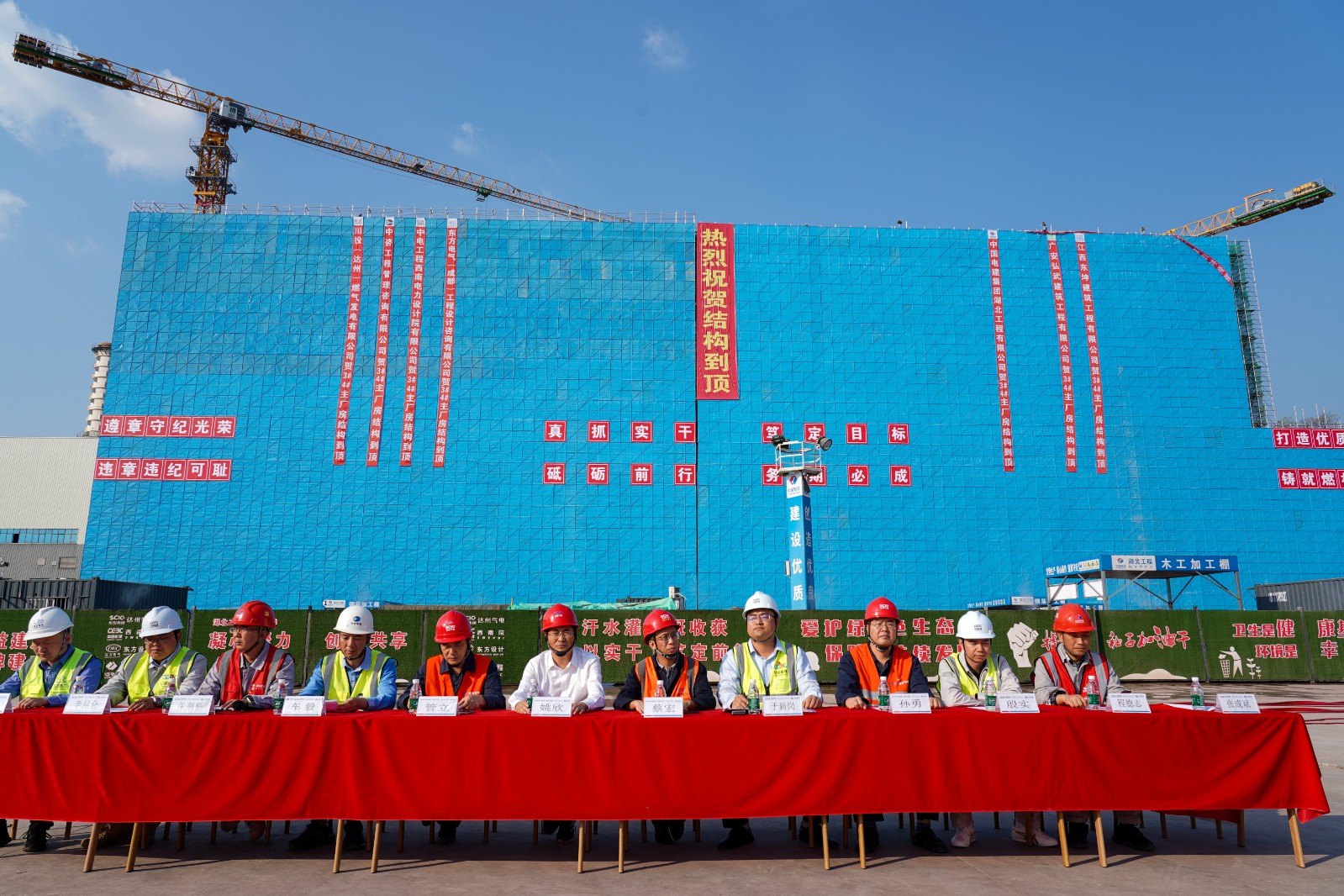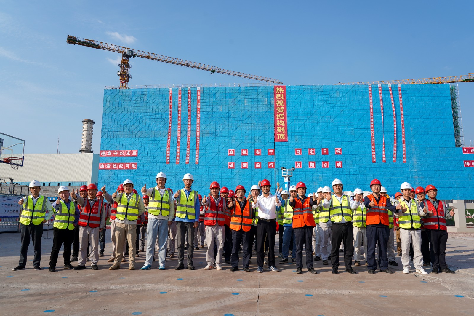 全體建設者將以此次主廠房結(jié)構(gòu)順利到頂為契機,繼續(xù)保持昂揚的斗志和拼搏精神,再接再厲,進一步加強項目管理,加快建設進度,確保燃氣發(fā)電項目早日建成投產(chǎn)。