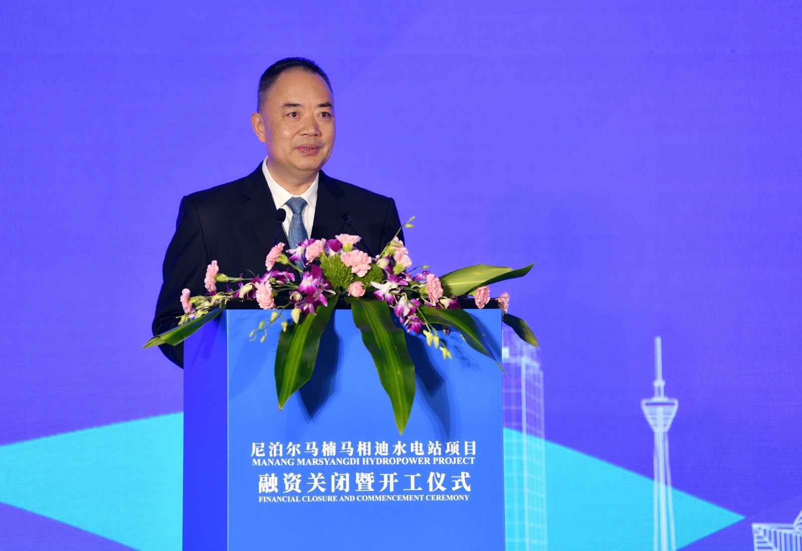 吳曉曦代表川投集團(tuán)向出席本次活動(dòng)的領(lǐng)導(dǎo)嘉賓表示熱烈的歡迎,對(duì)大家長(zhǎng)期以來對(duì)川投集團(tuán)的關(guān)心、支持和幫助表示誠(chéng)摯的感謝。他表示,馬相迪河發(fā)源于喜馬拉雅山,變優(yōu)質(zhì)資源為光明能源,點(diǎn)亮千家萬戶,符合民生之本,符合兩國(guó)之愿。建設(shè)好、運(yùn)營(yíng)好馬相迪梯級(jí)水電站項(xiàng)目是黨中央、國(guó)務(wù)院和省委、省政府交給我們的光榮任務(wù),也必將生動(dòng)地見證和詮釋中尼之間“跨越喜馬拉雅的友誼”。川投集團(tuán)將與各方一道,以馬楠馬相迪水電站為紐帶,用實(shí)際行動(dòng)當(dāng)好四川建設(shè)的代言者、當(dāng)好四川文化的傳播者、當(dāng)好四川形象的維護(hù)者,打造示范標(biāo)桿工程,服務(wù)“一帶一路”建設(shè),造福“高山之國(guó)”人民,讓中尼世代友好之花綻放得更加絢麗!