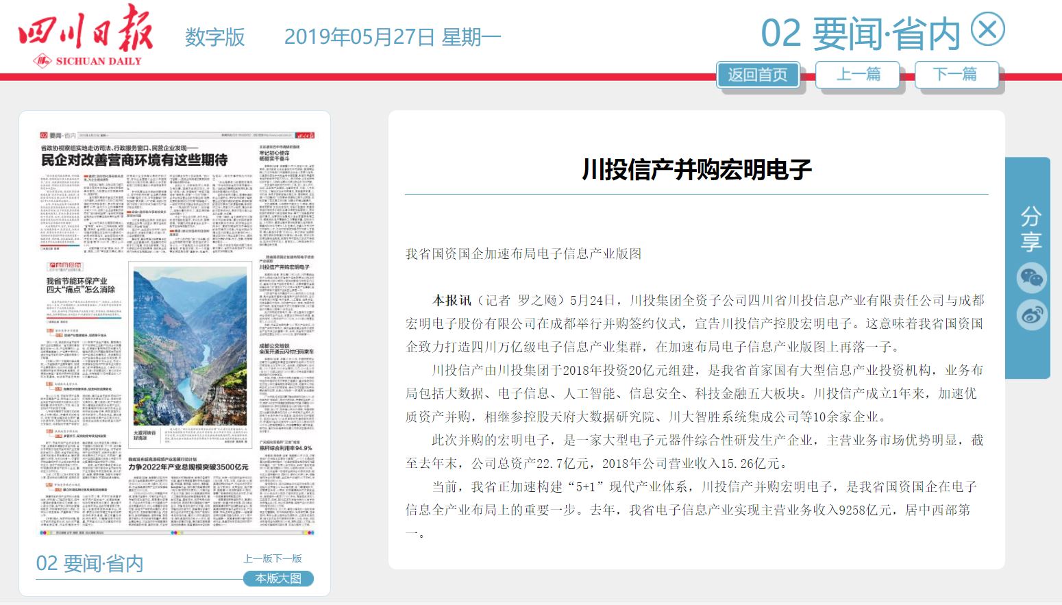 川投信產(chǎn)并購宏明電子