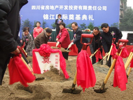 2006年12月30日下午2點(diǎn)整,四川省房地產(chǎn)開發(fā)投資有限責(zé)任公司和四川宏凌實(shí)業(yè)有限公司聯(lián)合開發(fā)的“錦江國(guó)際”項(xiàng)目奠基儀式在“錦江國(guó)際”工地現(xiàn)場(chǎng)舉行。川投集團(tuán)副總經(jīng)理、三產(chǎn)部經(jīng)理梅林、副經(jīng)理薛波、房地產(chǎn)公司總經(jīng)理王建、副總經(jīng)理唐洪昌、蔡昌銀、四川宏凌公司董事長(zhǎng)羅小林、總經(jīng)理冉衛(wèi)東、總工程師敬廷平及房地產(chǎn)公司和南河分公司全體員工、工程監(jiān)理單位、基礎(chǔ)施工單位等共同參加了該項(xiàng)目的工程奠基儀式。