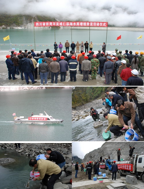 2009年10月22日上午,位于四川省甘孜州康定縣的仁宗海水庫右岸彩旗飄揚,“深入貫徹落實科學(xué)發(fā)展觀,共建生態(tài)文明”、“保護(hù)水生生物資源,促進(jìn)人與自然和諧發(fā)展”等標(biāo)語高懸醒目,由四川省水產(chǎn)局、甘孜州水利局、康定縣水利局聯(lián)合組織,田灣河公司承辦的四川省田灣河流域仁宗海水庫增殖放流活動儀式在這里隆重舉行。