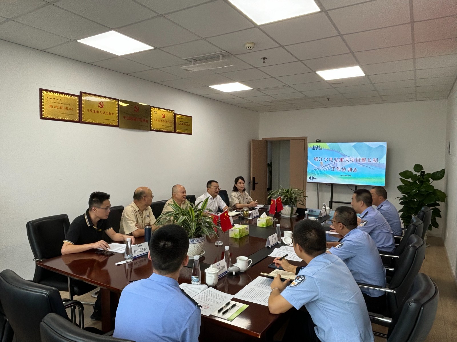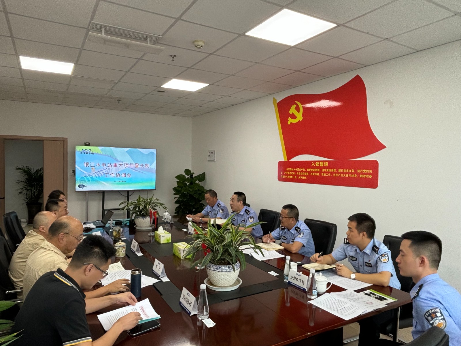 為保障銀江水電站重大項(xiàng)目安全順利推進(jìn),護(hù)航服務(wù)攀枝花市高質(zhì)量發(fā)展建設(shè)共同富裕試驗(yàn)區(qū),攀枝花市公安局與川投能源下屬攀水電公司建立了銀江水電站“重大項(xiàng)目警長(zhǎng)制”,近日,市公安局機(jī)關(guān)黨委副書記張征帶隊(duì)赴公司召開工作協(xié)調(diào)會(huì)議。攀水電公司黨總支副書記、總經(jīng)理、聯(lián)絡(luò)工作組組長(zhǎng)吳巍嶼出席會(huì)議,交警支隊(duì)辦公室、秩序科、三大隊(duì)及公司相關(guān)部門等10余人參加會(huì)議。