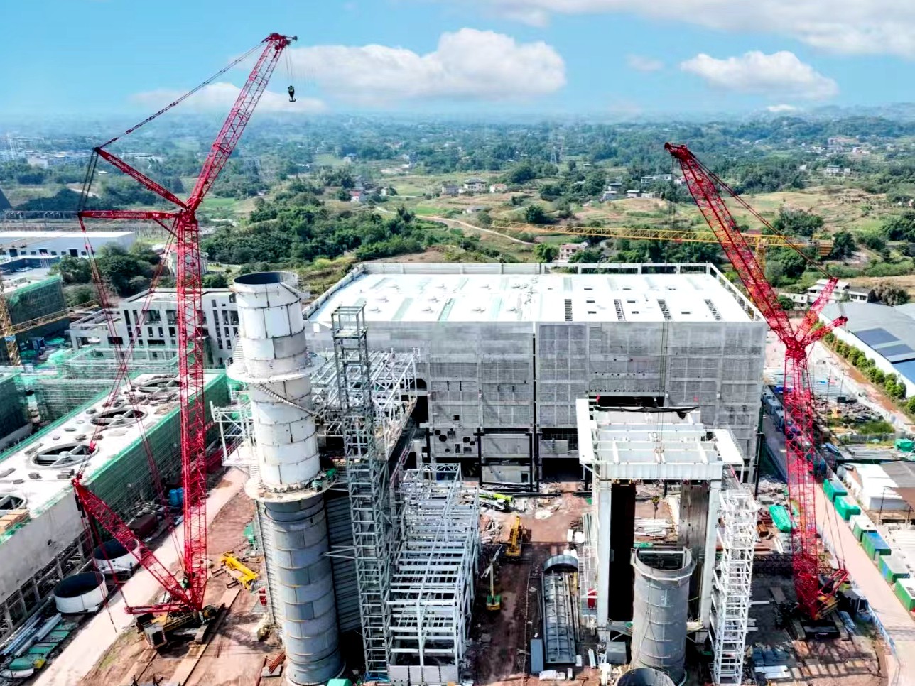 走進(jìn)川投瀘州天然氣發(fā)電項(xiàng)目現(xiàn)場(chǎng),一輛輛大貨車滿載管道材料、電儀配件、主輔設(shè)備等陸續(xù)到場(chǎng),一臺(tái)臺(tái)叉車來(lái)往穿梭不停卸貨,各類設(shè)備按工序分區(qū)域整齊堆放,技術(shù)人員在各區(qū)域穿梭,指導(dǎo)設(shè)備轉(zhuǎn)運(yùn)、安裝,現(xiàn)場(chǎng)一片繁忙卻井然有序的景象。繼1號(hào)主廠房全面止水后,項(xiàng)目進(jìn)入設(shè)備安裝的關(guān)鍵時(shí)期。在主廠房施工區(qū)域,兩臺(tái)大型行車縱橫往返,各類大型機(jī)械依次就位,燃機(jī)、汽輪機(jī)、發(fā)電機(jī)三大件的組合安裝蓄勢(shì)待發(fā);在余熱鍋爐施工區(qū)域,1號(hào)余熱鍋爐所有受熱面模塊和高、中、低壓汽包已全部吊裝就位,正朝著本體管道安裝完成的節(jié)點(diǎn)快馬加鞭;同時(shí),機(jī)力通風(fēng)冷卻塔、升壓站施工等如火如荼,項(xiàng)目進(jìn)度有條不紊、推進(jìn)迅速。