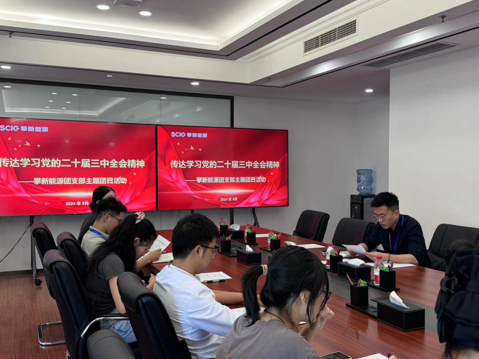 近日,川投能源所屬攀新能源公司團(tuán)支部舉行2024年9月主題團(tuán)日活動(dòng),專題傳達(dá)學(xué)習(xí)《中國共產(chǎn)黨第二十屆中央委員會(huì)第三次全體會(huì)議公報(bào)》,學(xué)習(xí)貫徹黨的二十屆三中全會(huì)精神。攀新能源團(tuán)支部書記、經(jīng)營管理部經(jīng)理潘鑫主持并領(lǐng)學(xué),公司全體團(tuán)員及屏山抽蓄公司全體團(tuán)員參會(huì)。