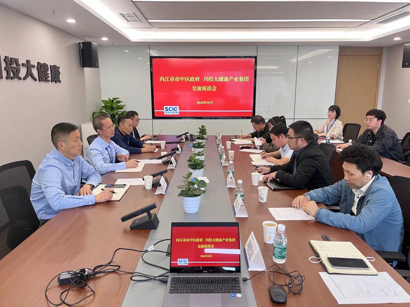 10月18日,內(nèi)江市市中區(qū)人民政府黨組成員、副區(qū)長鄒河旺帶隊來訪川投大健康,就養(yǎng)老項目合作進行調(diào)研。川投大健康黨委副書記、總經(jīng)理周家超,副總經(jīng)理、財務(wù)總監(jiān)姜濤參與座談交流。