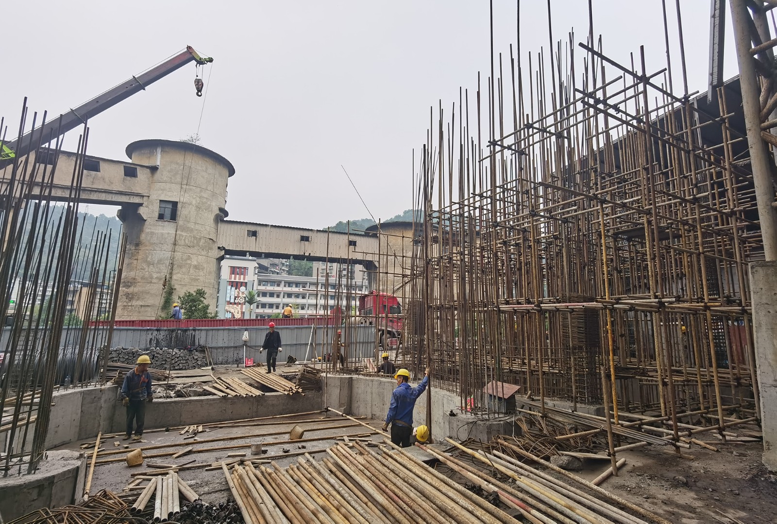 繼分級(jí)轉(zhuǎn)運(yùn)系統(tǒng)主體竣工后,配套設(shè)施工程建設(shè)往外加速推進(jìn),主要在嘉陽(yáng)煤礦炭壩原入口處新建兩個(gè)儲(chǔ)備800噸煤炭的煤倉(cāng),工期120天,現(xiàn)已完成兩煤倉(cāng)樁基施工和地梁混凝土澆灌并通過驗(yàn)收。目前,施工人員正按設(shè)計(jì)搭建腳手架,從兩個(gè)煤倉(cāng)的基礎(chǔ)向上延伸鋼筋,逐漸形成圓形煤倉(cāng)筒體,為下一步混凝土澆灌作準(zhǔn)備。現(xiàn)場(chǎng),公司現(xiàn)場(chǎng)管理單位緊盯工程進(jìn)度,做好全過程技安指導(dǎo)與督察,確保工程順利推進(jìn)。