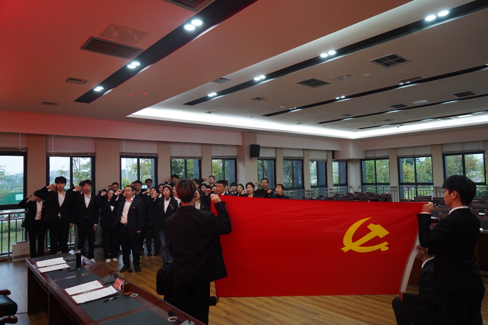 隨后,新發(fā)展黨員和擬轉(zhuǎn)正黨員代表結(jié)合工作崗位和自身情況,圍繞對黨的認(rèn)識、入黨動機(jī)和今后努力方向等方面作了表態(tài)發(fā)言。在學(xué)院黨委書記、理事長張中偉同志的帶領(lǐng)下,全體黨員進(jìn)行了入黨宣誓。鏗鏘有力的誓言,表達(dá)了黨員對黨忠誠和為黨奮斗的決心和承諾。