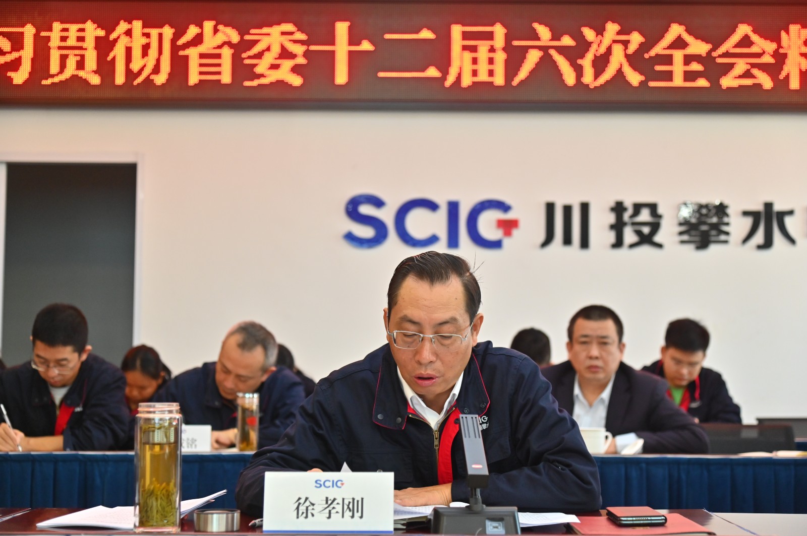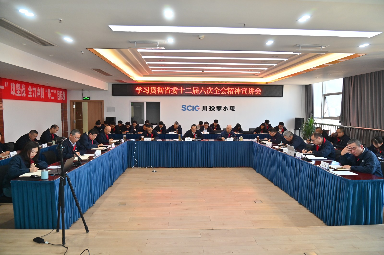 為深入學(xué)習(xí)貫徹省委十二屆六次全會(huì)精神,推動(dòng)全會(huì)精神在攀水電公司和銀江水電站落地落實(shí),近日,川投能源副總經(jīng)理,攀水電公司黨總支書記、董事長(zhǎng)徐孝剛組織開(kāi)展了省委十二屆六次全會(huì)精神宣講。會(huì)議以“現(xiàn)場(chǎng)+視頻”形式召開(kāi),攀水電公司和水電五局項(xiàng)目部全體黨員、干部職工代表共計(jì)50余人參加學(xué)習(xí)。