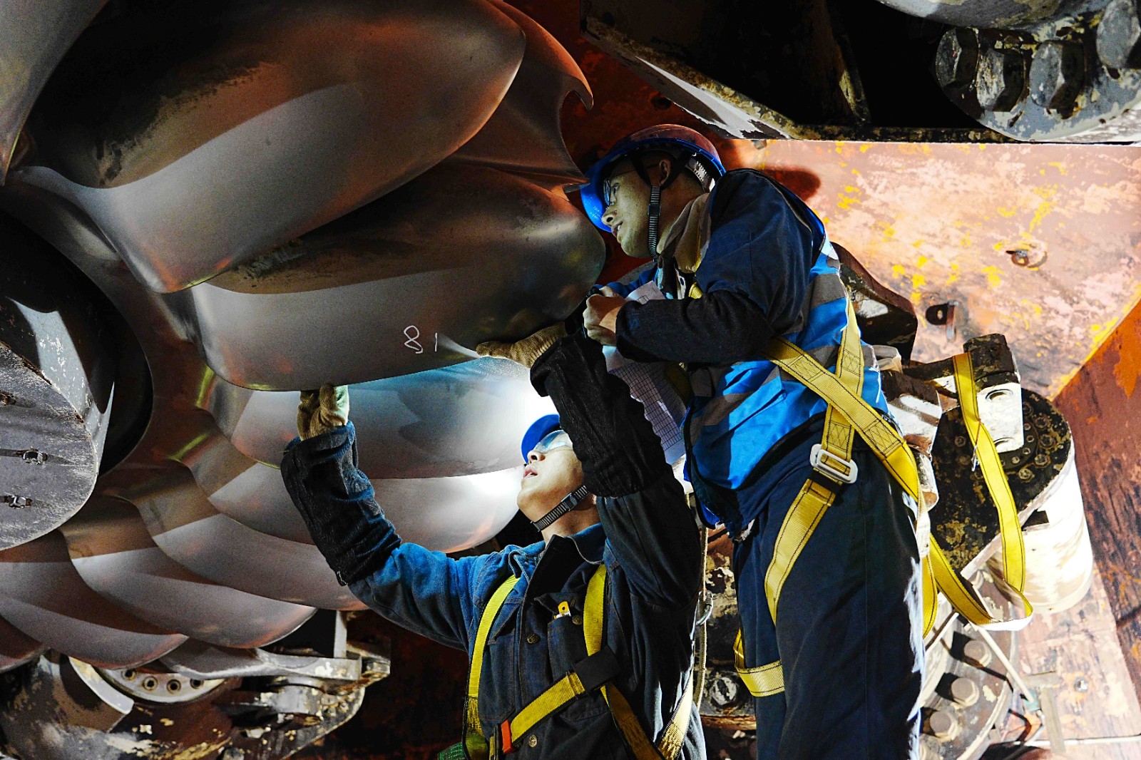 連續(xù)奮戰(zhàn),展現(xiàn)擔當。為保證汛后檢修工作保質(zhì)保量按時完成,公司提前做好“排兵布陣”,專業(yè)骨干及新進員工在設(shè)備改造、轉(zhuǎn)輪更換等檢修作業(yè)高峰期紛紛調(diào)整休假,連續(xù)奮戰(zhàn),全力保障檢修工作順利進行。在檢修作業(yè)現(xiàn)場,既有經(jīng)驗豐富、技術(shù)精湛的檢修骨干,也有朝氣蓬勃的年輕一代,新老兩代檢修人員相互協(xié)作、相互學(xué)習(xí),彰顯責(zé)任擔當?shù)耐瑫r,傳承著屬于田灣河的技術(shù)經(jīng)驗與精神文化。