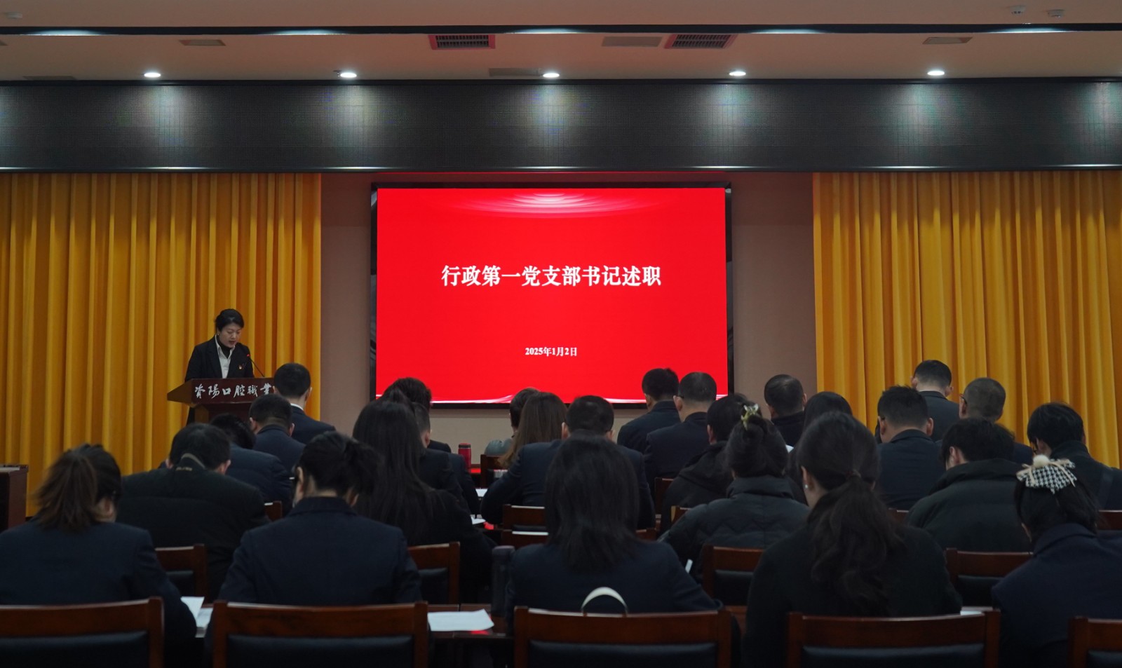 1月2日上午,資陽(yáng)口腔職業(yè)學(xué)院召開(kāi)2024年度黨支部書(shū)記抓基層黨建述職評(píng)議會(huì)議。學(xué)院領(lǐng)導(dǎo)班子成員、中層干部、各黨支部書(shū)記、支部委員及黨員代表參加會(huì)議。