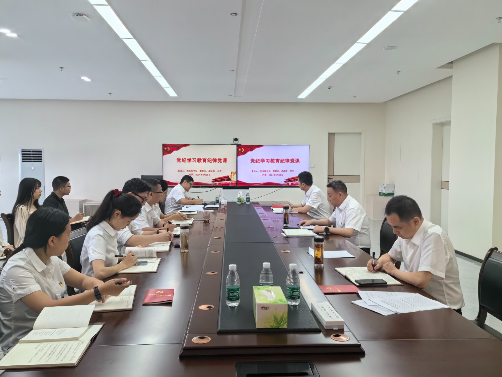 公司領(lǐng)導(dǎo)班子成員、全體員工黨員和關(guān)鍵崗位員工參加此次黨紀(jì)學(xué)習(xí)教育紀(jì)律專題黨課。