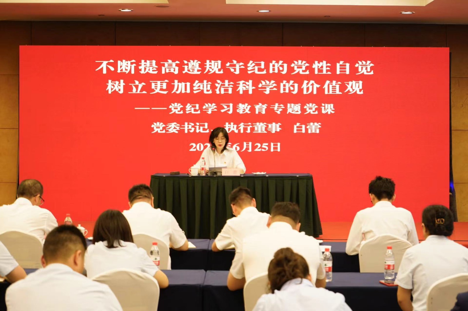 為深入學(xué)習(xí)貫徹習(xí)近平總書(shū)記關(guān)于加強(qiáng)黨的紀(jì)律建設(shè)的重要論述以及習(xí)近平總書(shū)記關(guān)于黨紀(jì)學(xué)習(xí)教育重要講話和重要指示精神,全面貫徹落實(shí)中央和上級(jí)黨委對(duì)學(xué)習(xí)貫徹新修訂《中國(guó)共產(chǎn)黨紀(jì)律處分條例》的部署要求,6月25日上午,川投國(guó)網(wǎng)黨委書(shū)記、執(zhí)行董事白蕾以《不斷提高遵規(guī)守紀(jì)的黨性自覺(jué) 樹(shù)立更加純潔科學(xué)的價(jià)值觀》為題,為公司黨員干部講授黨紀(jì)學(xué)習(xí)教育專題黨課。