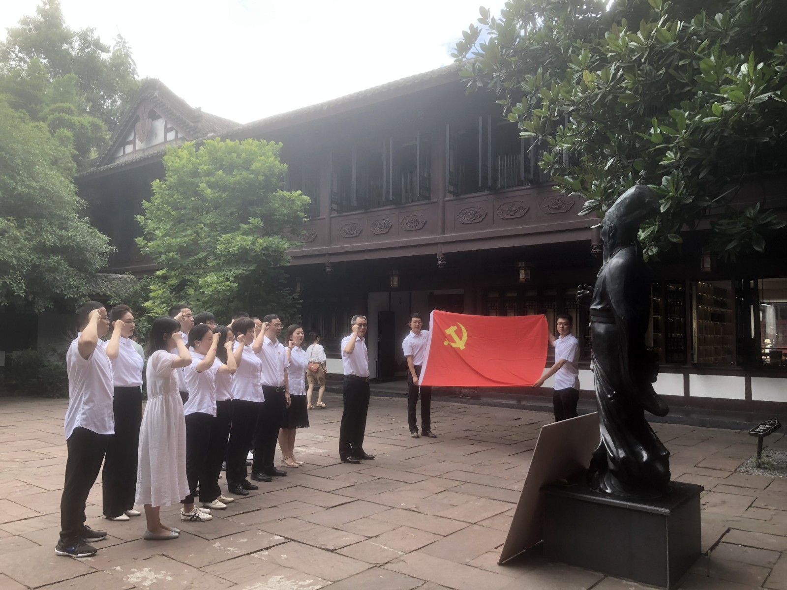 下午,大家沿著總書記參觀路線觀看了三蘇祠家風(fēng)教育基地,認(rèn)真聆聽三蘇故事,領(lǐng)略“讀書正業(yè)、孝慈仁愛、非義不取、為政清廉”的蘇門家風(fēng),進(jìn)一步增強(qiáng)了“明大德、守公德、嚴(yán)私德”的思想自覺和行動(dòng)自覺。參觀現(xiàn)場(chǎng),戰(zhàn)略支部書記田傳平帶領(lǐng)支部黨員同志重溫了入黨誓詞。