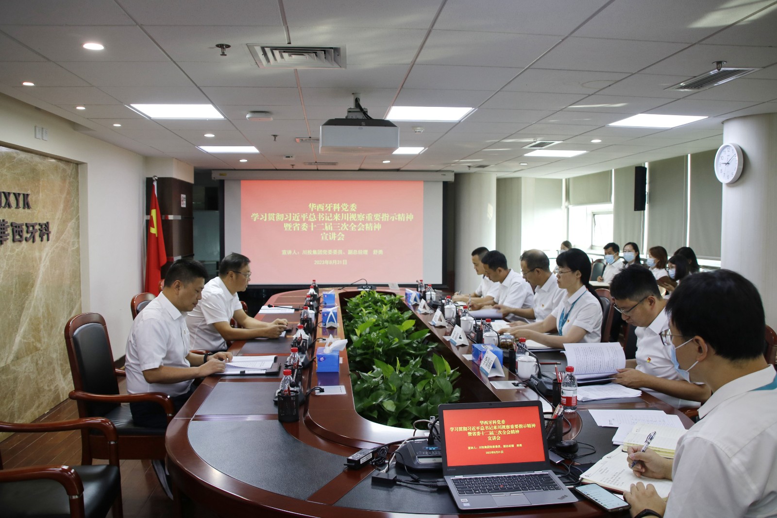 集團公司黨委組織部、黨委巡察辦相關(guān)負責(zé)同志到會指導(dǎo)華西牙科在家班子成員參加會議,黨委組織部、黨委宣傳部、紀檢工作部主要負責(zé)同志列席會議。中層以上管理人員、各基層黨支部書記共20余人參加宣講